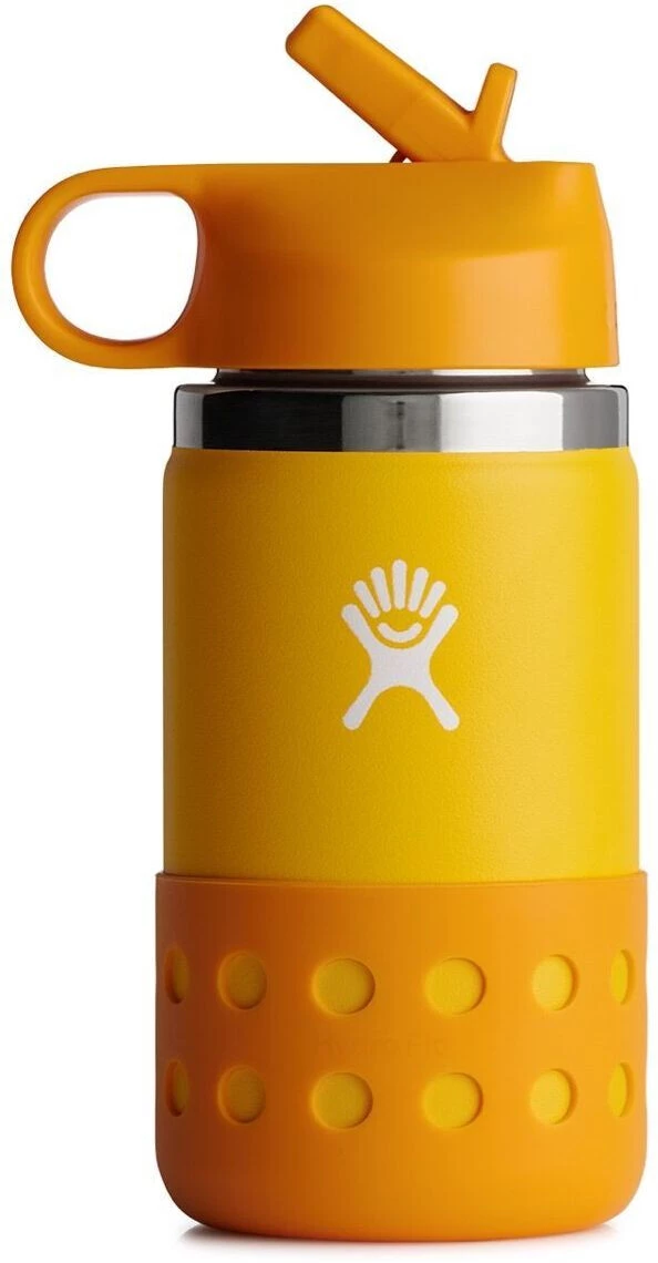 Hydro Flask Wide Mouth Bottle with Straw Lid and Boot 355ml Kids, orange(canary)